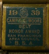 In 1914 “The World Almanac” made the first telephone call across the United States when it phoned Charles C. Moore (who at that time was President of the Panama-Pacific Exposition in San Francisco) regarding the opening of the Worlds fair in San Francisco. In 1919 Charles C Moore was elected President of the San Francisco Council after the sudden death of its first President Jesse Lilienthal. Moore would serve as President of the San Francisco Council from 1919 until 1928. During this time Charles Moore was instrumental in opening its first permanent Scout Camp at Pine Lake, acquiring the Watson Ranch in Cazadero for use as a Scout camp in 1925 and acquiring the Kent Estate in Fairfax for another Scout Camp. Moore would also serve as the Vice-President of the National Boy Scouts of America in 1928 and in 1930 he would be presented with the Silver Buffalo award, the highest honor that the National Boy Scouts of American can present. Charles Moore died in April of 1932.