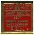 However from 1938 until 1950 the name Camp Moore was used on all Council literature when it referred to the camp formerly known as Royaneh. The name of “Royaneh” never disappeared as the term was still used by the San Francisco Council to refer to their two camps (Camp Moore and Camp Lilienthal) as “Royaneh Camps”. The patch used at both Camp Moore and Camp Lilienthal was the same patch however if you attended Camp Moore you received an “M” to attach to your patch or an “L” if you attended Camp Lilienthal. This lasted until the 1950’s when patches specific to Camp Royaneh and Camp Lilienthal were released after the name of Camp Moore disappeared for good.